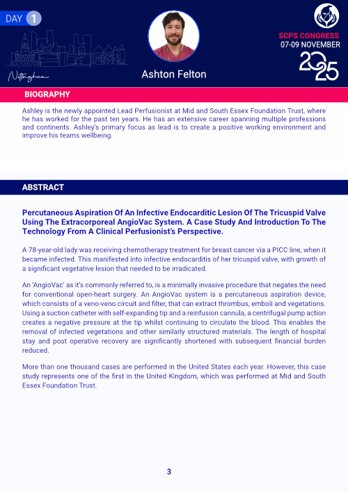 In addition this year, we are inviting Perfusionists who wish to present on a pre-assigned topic to express their interest. The deadline for abstract submission is the 31 July 2024. Abstracts should be under 300 words. Plase see instructions on our abstracts page.